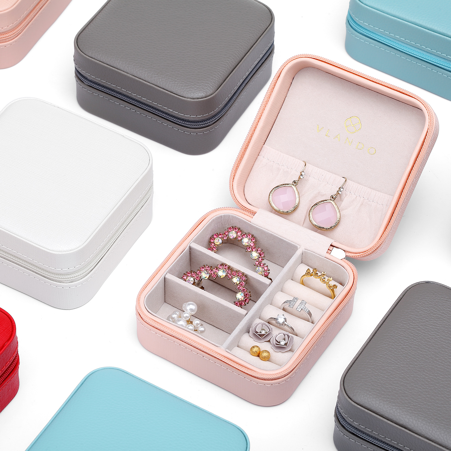 1. Портативний розмір - невеликий розмір і легка вага, призначений для подорожей 2. Вбудоване дзеркало - перевірте свій вигляд і запобігти розкиданню прикрас 3. Знімний роздільник - вільно регулюйте простір відповідно до ваших потреб 4. Різні кольори - 5 кольорів для на вибір, яскравий чи простий 5. Вибір подарунка — подарунок собі чи будь-кому, кого ви дуже цінуєте